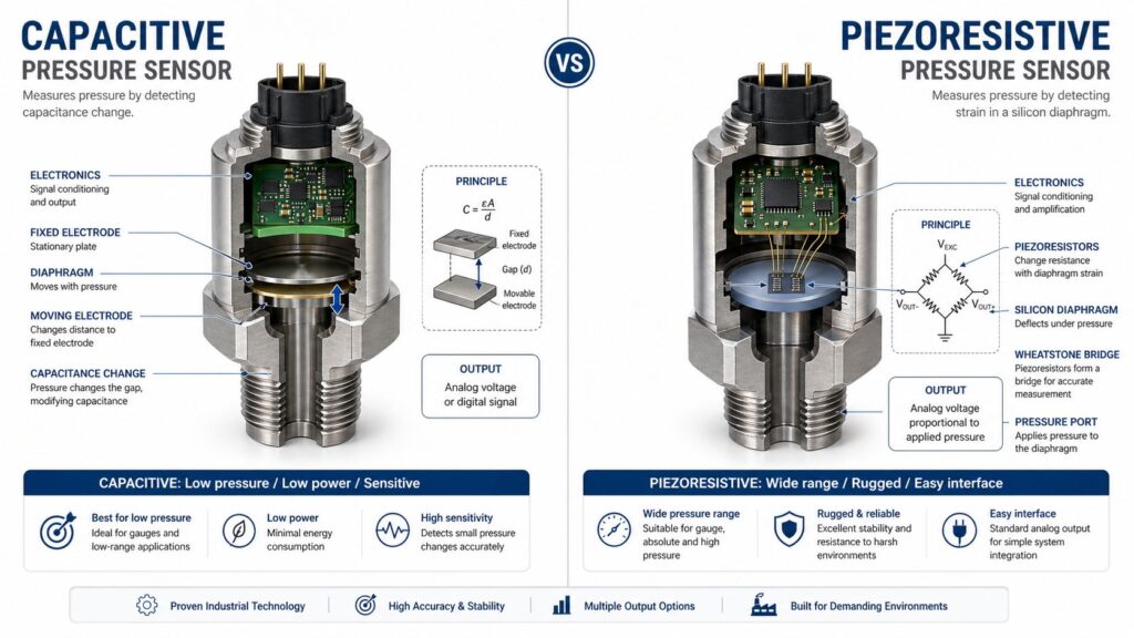 Capacitive vs piezoresistive pressure sensors: which is better for your equipment?