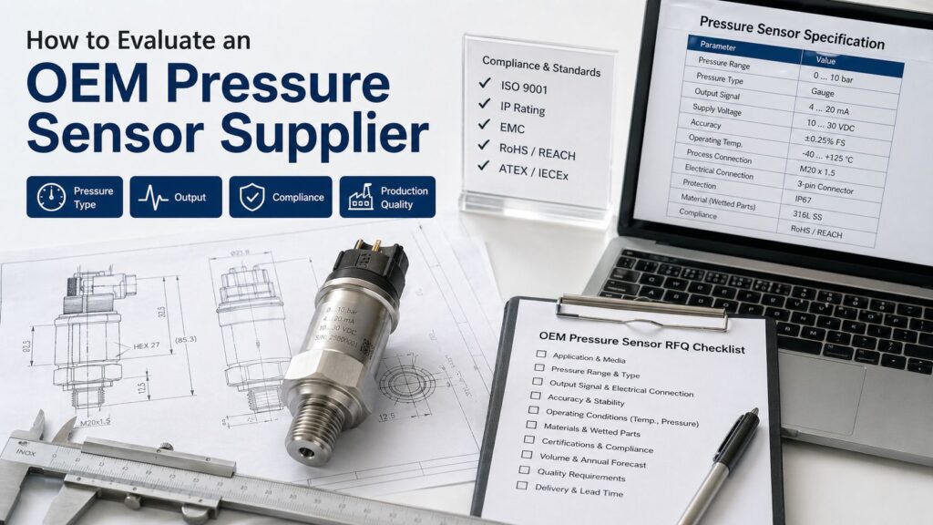 This article explains what an OEM pressure sensor manufacturer should provide, what you should put in your RFQ, and how to choose between capacitive and piezoresistive pressure sensors for industrial equipment.